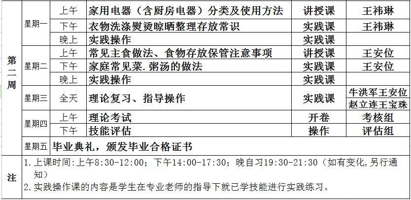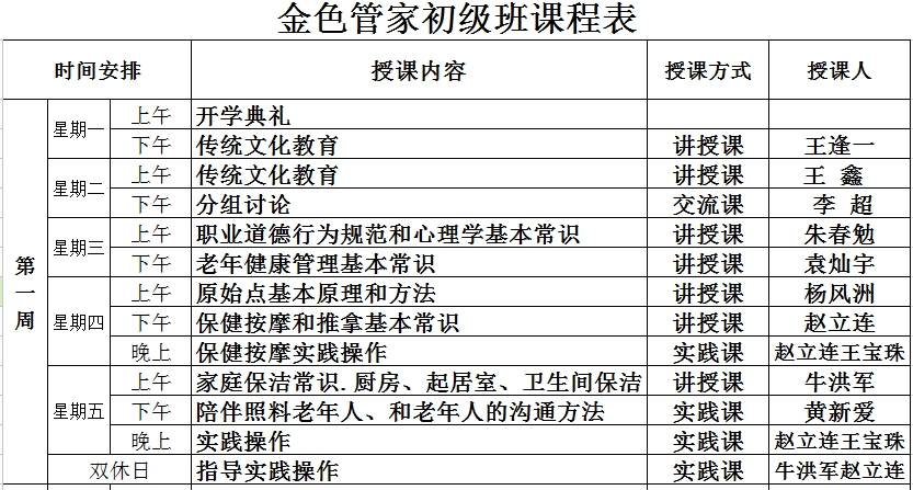 金色管家初级班课程表